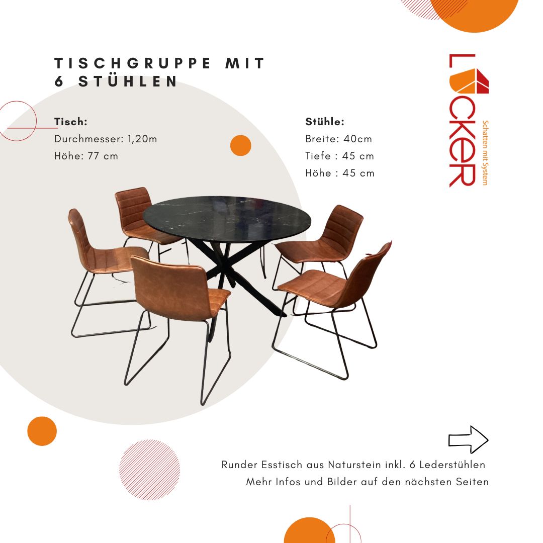 Runder Esstisch mit 6 Lederstühlen