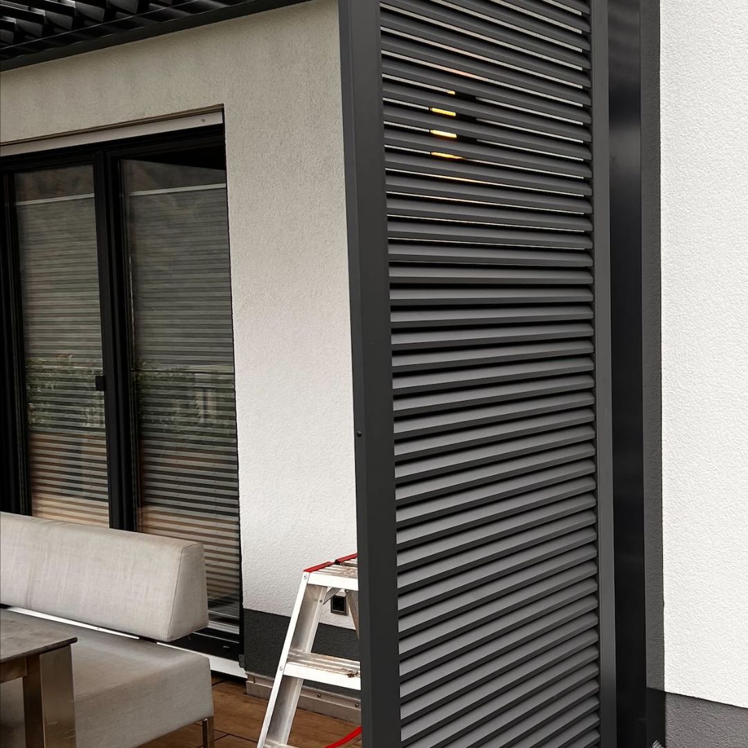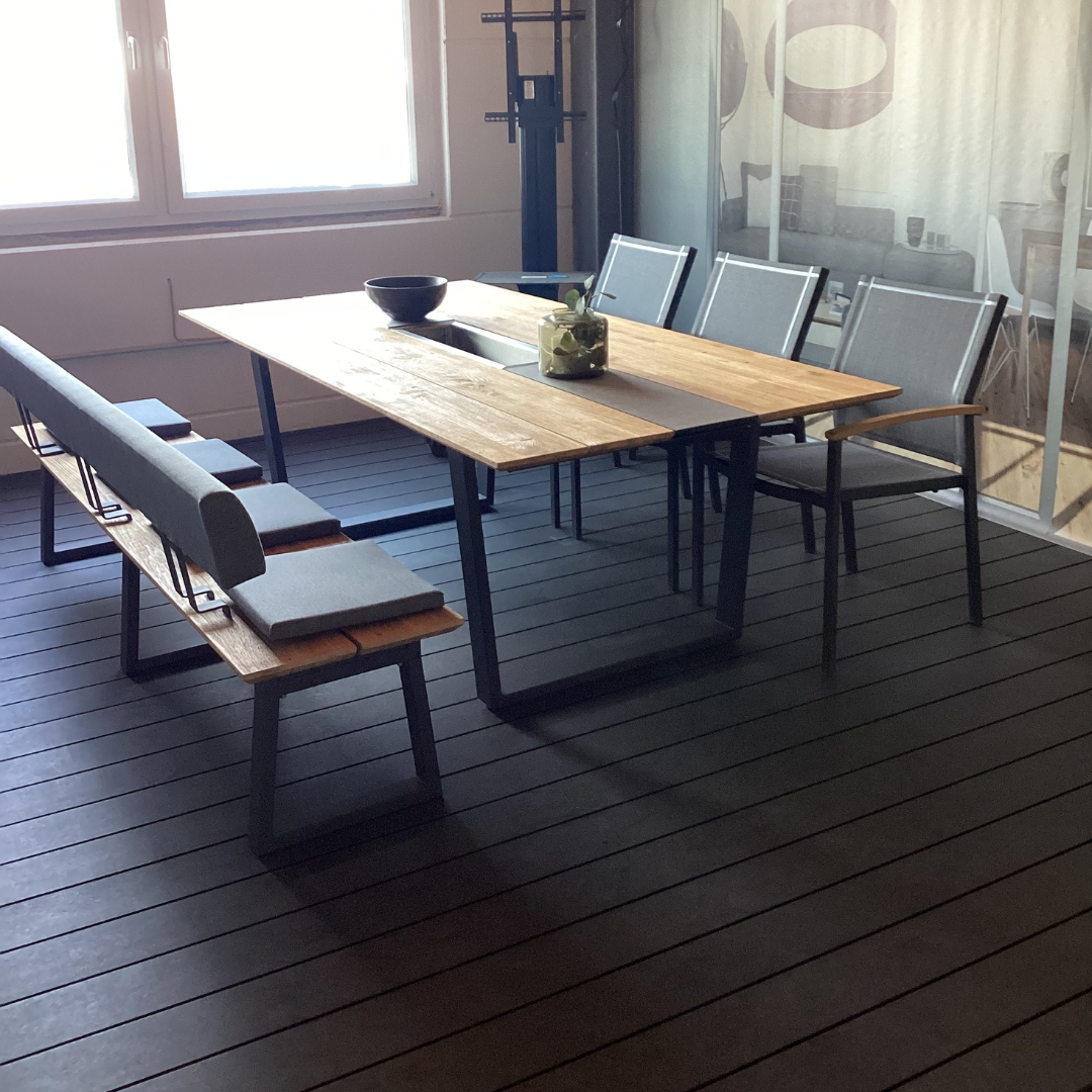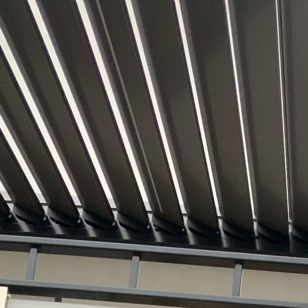 Das wunderschöne Glasdach ist der perfekte Wetterschutz für Ihr neues Outdoor-Wohnzimmer. In der Trendfarbe RAL 7016 fügt es sich in viele Außenbereiche perfekt ein. Details wie der integrierte Wasserablauf in einem der Stützpfosten machen dieses hochwertige Produkt aus. Dazu kommt die integrierte Beschattung unter dem Glasdach sowie die LED-Beleuchtung.